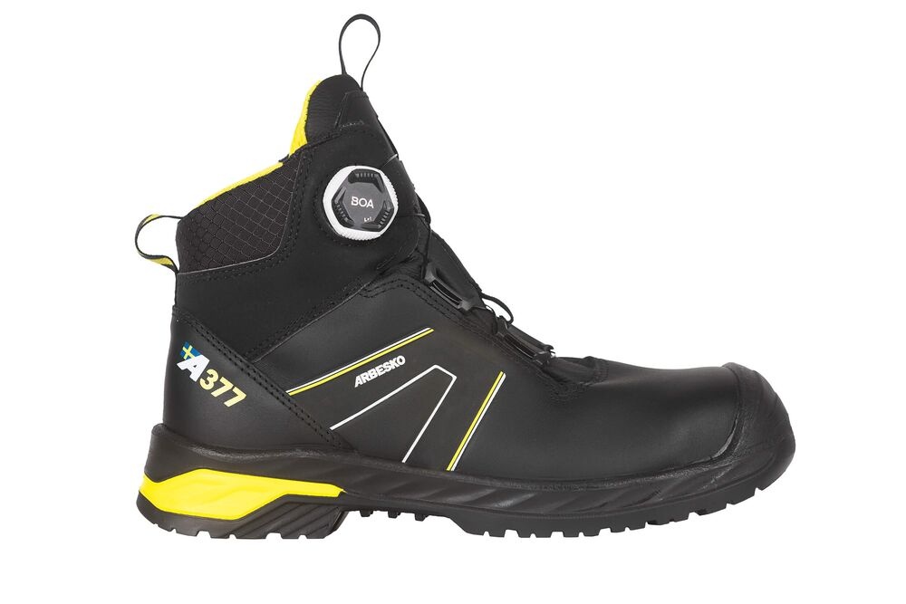 Het zijwaarts geplaatste BOA® Fit System maakt een snelle en nauwkeurige pasvorm mogelijk, zonder uitstekende onderdelen die kunnen blijven haken – ideaal voor werken in krappe ruimtes. De nitrilrubberen buitenzool is slipbestendig (SR), hittebestendig (HRO) en speciaal ontworpen voor veilig werken op ladders.