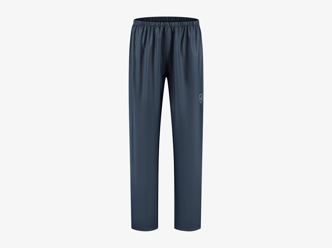 De broek is vervaardigd van 100% polyester met en doekgewicht van 190 gr/m² Het logo van de regenprotectie bevindt zich op het linkerbeen.