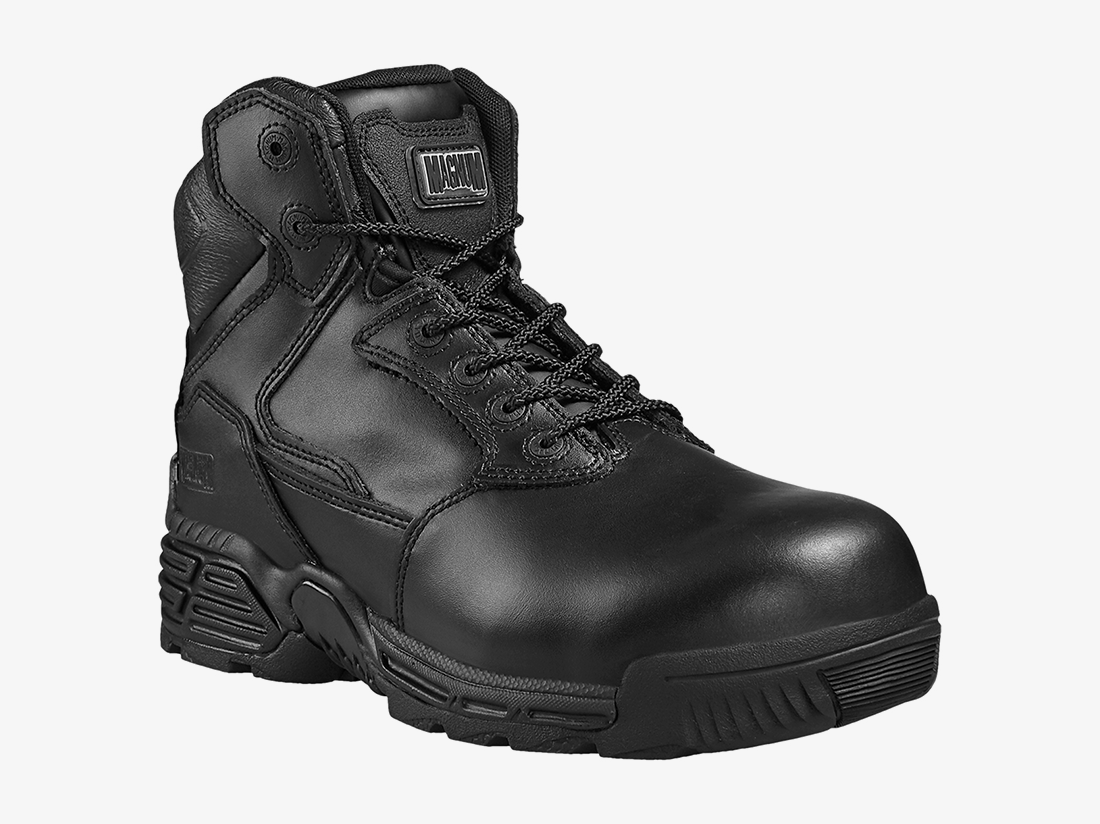 De Magnum Stealth Force 6.0 Leather Composite Toe & Plate is een 6-inch uniforme veiligheidslaars voor zowel mannen als vrouwen, ontworpen voor professionals die vertrouwen op duurzaamheid, comfort en betrouwbare bescherming. Het hoogwaardige leren bovenwerk is slijtvast en voorzien van scanner-veilige, niet-metalen composiet hardware, waardoor de laars geschikt is voor werkomgevingen met veiligheidscontroles.