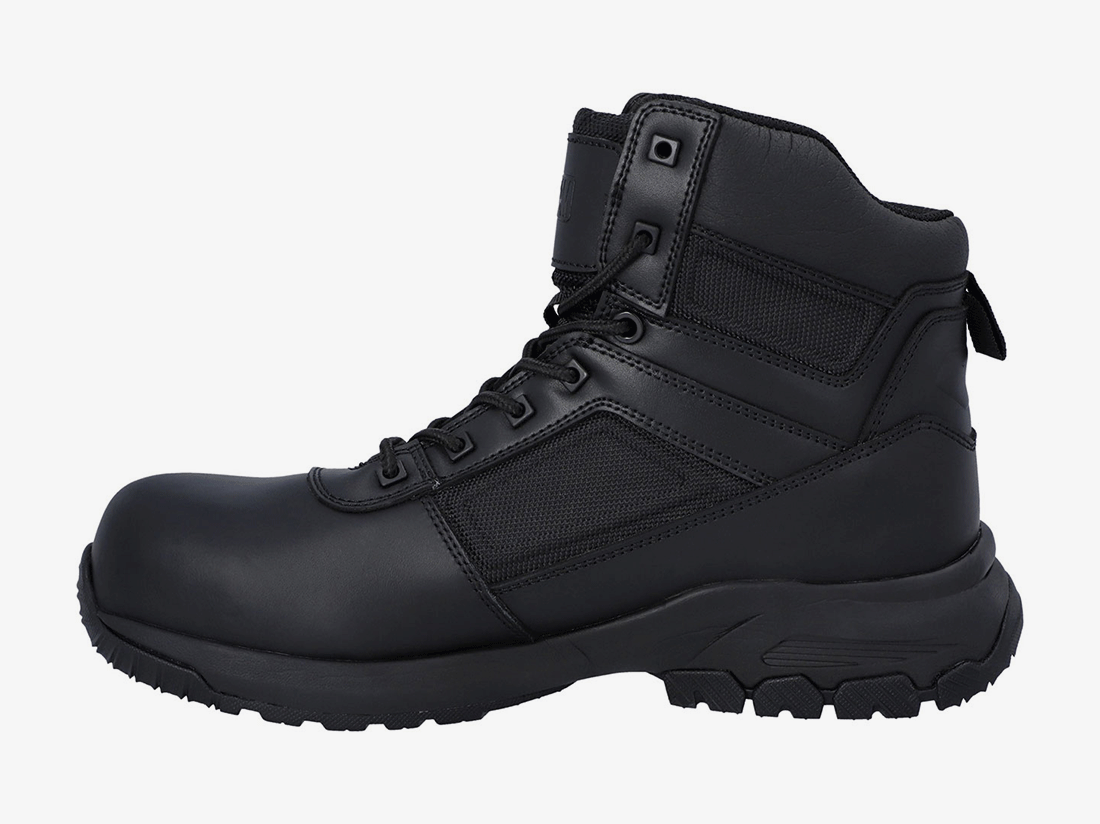 De Magnum Vanguard 6.0 is uitgerust met een composiet veiligheidsneus en antiperforatieplaat en is getest en gecertificeerd volgens EN ISO 20345:2022 S3 FO HRO SR. Daarmee is deze halfhoge tactische veiligheidslaars een uitstekende keuze voor professionals die snelheid, comfort en veiligheid willen combineren.