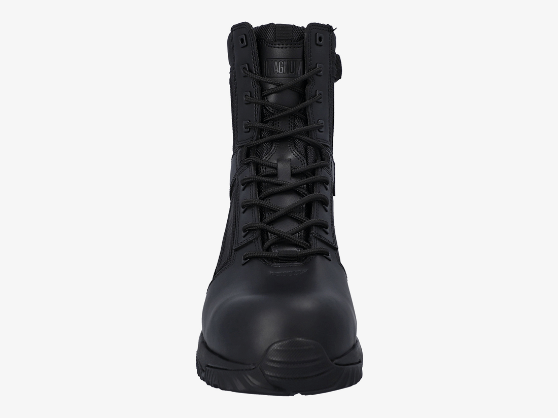 De Magnum Vanguard 8.0 is uitgerust met een composiet veiligheidsneus en antiperforatieplaat voor volledige bescherming en is getest en gecertificeerd volgens EN ISO 20345:2022 S3 FO HRO SR. Daarmee is deze hoogbenige veiligheidslaars een uitstekende keuze voor professionals die snelheid, comfort en veiligheid willen combineren in één tactische laars.