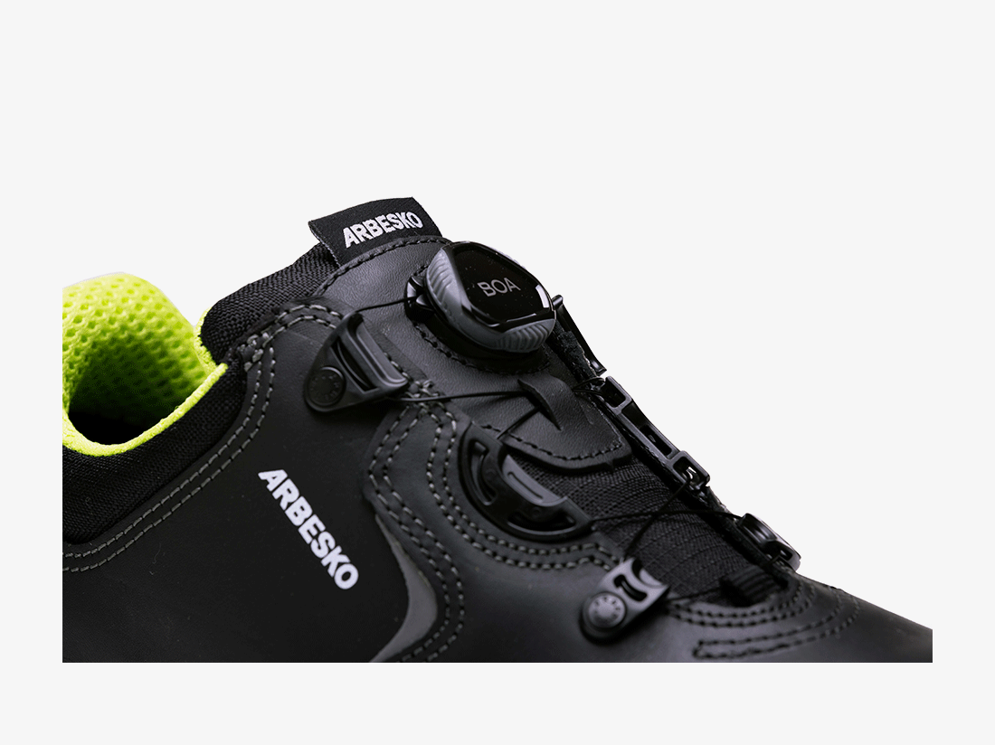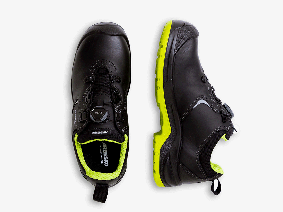 Umeå 945 is een duurzame werkschoen van waterafstotend leer uitgerust met BOA® Fit System voor een snelle, moeiteloze, nauwkeurige pasvorm. De veiligheidsschoen is ESD-goedgekeurd en de hittebestendige buitenzool gecombineerd met het extra hielkussen in de tussenzool zorgt voor een goede schokabsorptie en uitstekende grip. De zachte antiperforatiebescherming van textiel en de lichtgewicht neus van aluminium beschermen je voeten tegen scherpe en vallende voorwerpen, en de schacht in de voetboog geeft extra ondersteuning en stabiliteit op oneffen ondergrond. Ontwikkeld voor vakmensen en monteurs die een slijtvaste veiligheidsschoen nodig hebben voor actieve werkdagen.