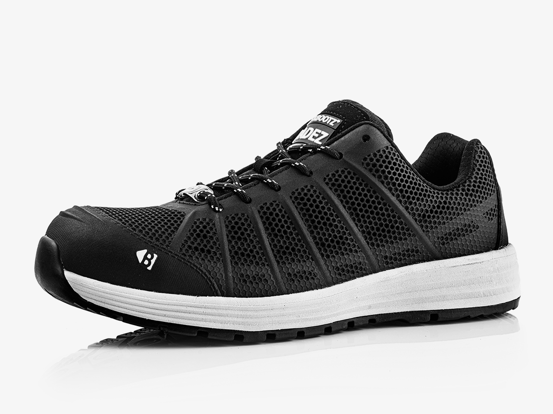 De KEZ is een super lichte, sportieve, lage, zwarte, volledig metaalvrije S1P veterschoen. De S1 P HRO SRC en ESD certificering in combinatie met de non marking rubberen zool zorgt ervoor dat dit de ideale schoen voor alle binnenwerkzaamheden is.