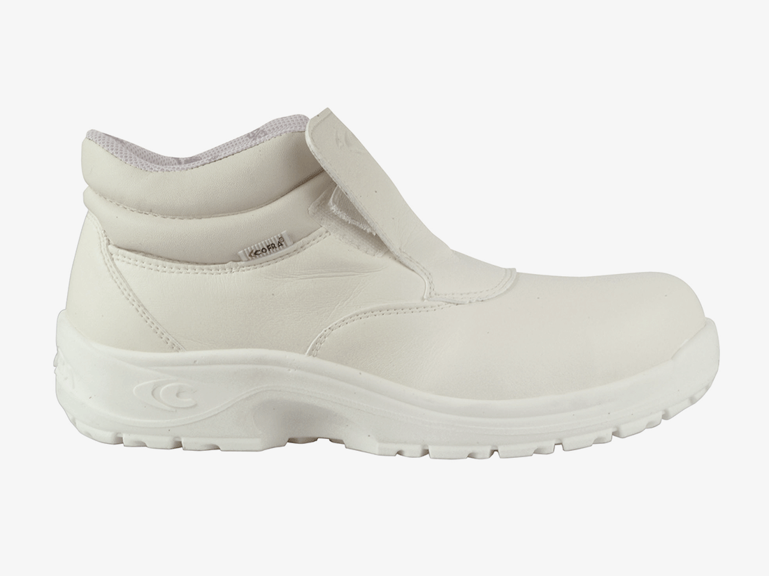 Een bijzondere veiligheidsschoen die 100% metaalvrij is en bestand tegen chemicaliën. Deze witte werkschoen is makkelijk te reinigen door bovenkant waar geen vuil aan hecht en is uitwasbaar. Daarom is deze schoen uitermate geschikt voor de food-sector, laboratoria en de zorg. S2 en antislip op alle ondergronden, voorzien van metaalrij top return neus.