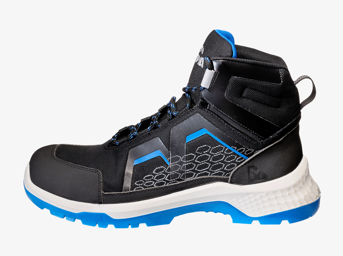 Unstoppable in every way. Sportief, lichtgewicht, dynamisch, duurzaam en metaalvrij. Ervaar ultieme grip dankzij de innovatieve Framework PU loopzool. Ondervind een onstuitbare bewegingsvrijheid terwijl u de klus klaart met deze S3S veiligheidsschoenen met NANO carbon neus. Geniet van een hoog draag- en loopcomfort dankzij het gebruik van vederlichte microvezelmaterialen en een innovatieve zachte inlegzool met comfortabel PU-schuim. De CrossForce Fly heeft reflecterende R-Pet veters en een 3M reflecterende lus in de hak en is gedeeltelijk gemaakt van gerecyclede content; in voering, veters, inlegzool en beschermde tussenzool. Voor zowel binnen als buiten gebruik. De CrossForce Fly is verkrijgbaar in 2 breedtes (D & XD).