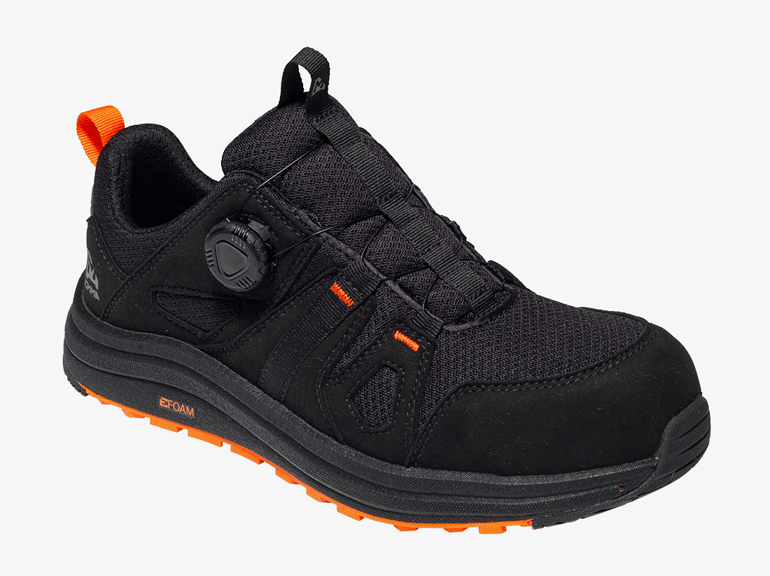 De E-BOUNCE Disc Black-Orange S1PS is de ideale schoen voor wie licht wil bewegen, veilig wil werken én waarde hecht aan snel en nauwkeurig sluiten.