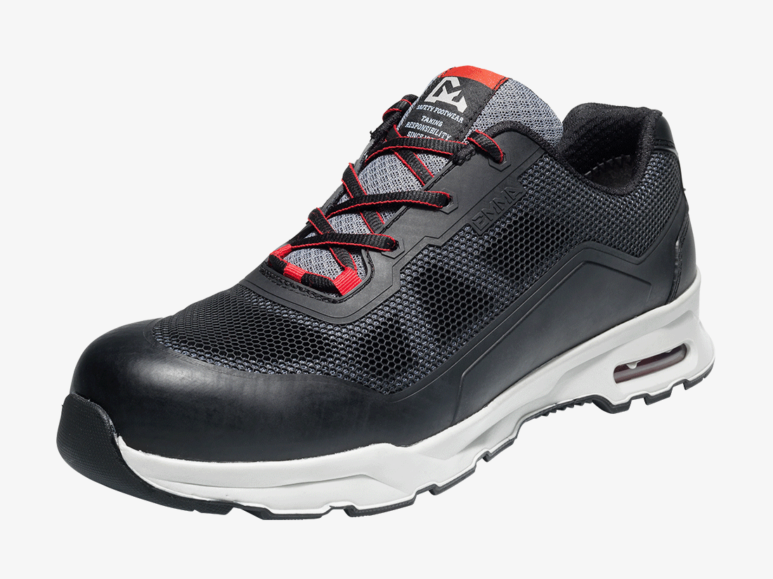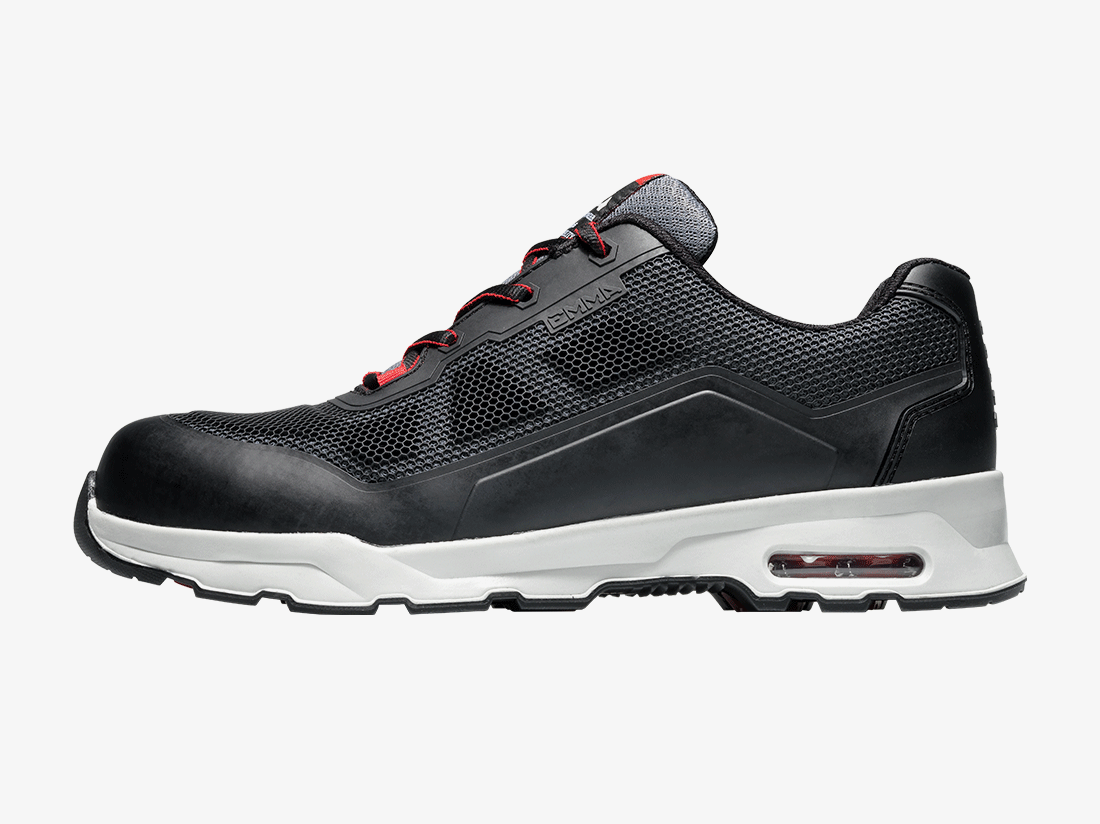 Deze schoen heeft de looks en voelt als een sportschoen en beschermt als een veiligheidsschoen. S1P en antislip op alle ondergronden, voorzien van Nano Carbon Composiet neus en geweven antipenetratiezool. ESD genormeerd en metaalvrij.