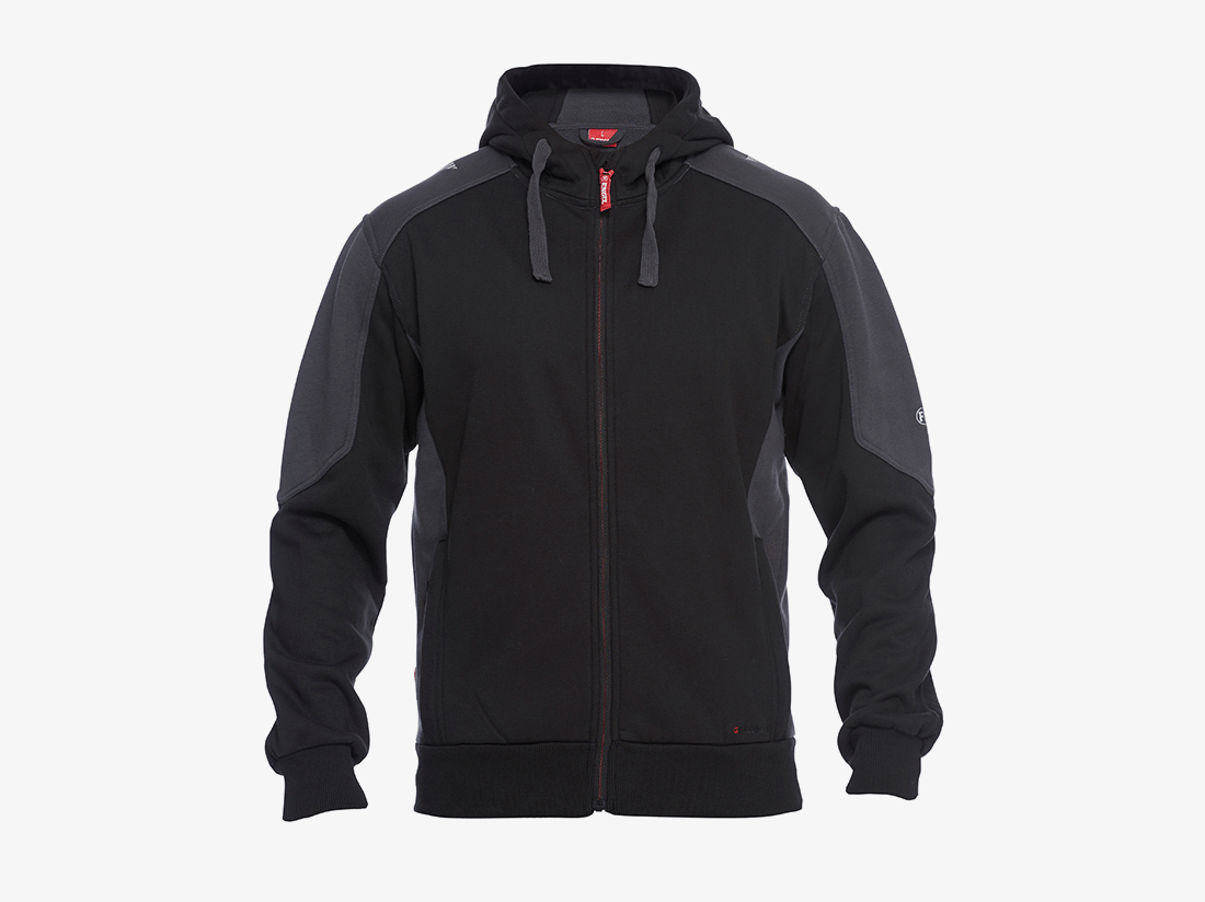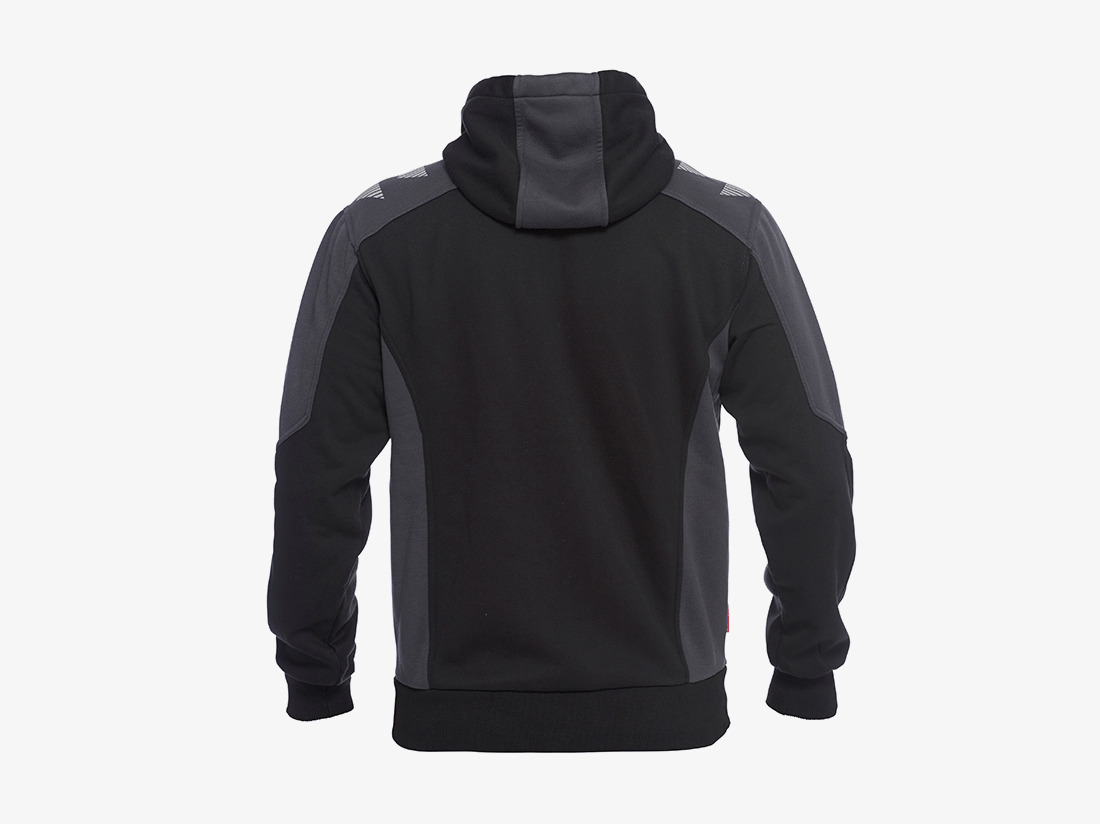 Functionele en comfortabele hoodie in gelaagde jersey, gevoerd met teddystof. Rits aan de voorzijde. Twee ruime steekzakken met rits. Ribstof in taille en mouwen. Reflectiestroken op de schouders voor betere zichtbaarheid.
