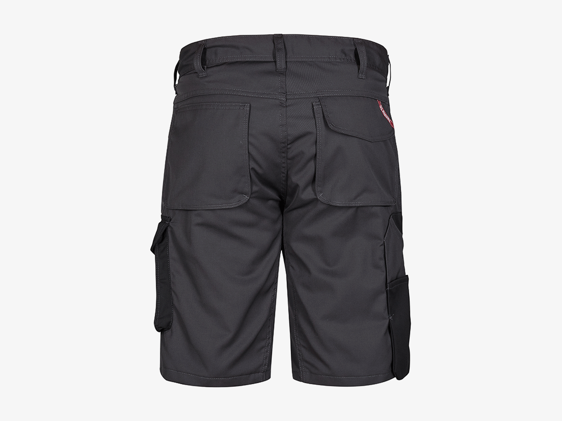 Functionele werkshort met veel praktische details. Optimale pasvorm met o.a. een paneel in de binnennaden dat voor een comfortabele kruisnaad zorgt. Twee ruime, schuine zakken aan de voorzijde. Lus met D-ring aan de voorzijde voor bevestigen van een ID-kaart. Twee ruime achterzakken