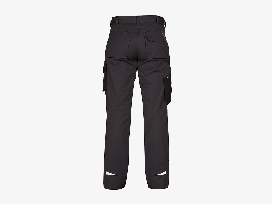 Functionele werkbroek met veel praktische details. Optimale pasvorm met o.a. ergonomisch gevormde kniepartij en een paneel in de binnennaden dat voor een comfortabele kruisnaad zorgt. Twee ruime, schuine zakken aan de voorzijde. Lus met D-ring aan de voorzijde voor bevestigen van een ID-kaart. Twee ruime achterzakken. Binnenbeenlengte 82cm.