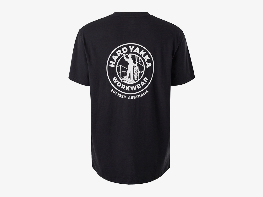 De regular fit zorgt voor een comfortabele pasvorm zonder in te boeten op bewegingsvrijheid, terwijl de geribde ronde halslijn extra vormvastheid en draagcomfort geeft. Het design wordt versterkt door de Heritage Icon-prints: een subtiele print op de borst en een opvallende, grotere print op de rug – een knipoog naar Hard Yakka’s rijke geschiedenis.