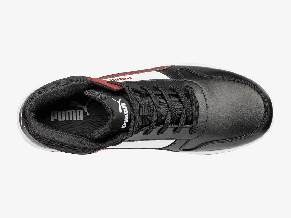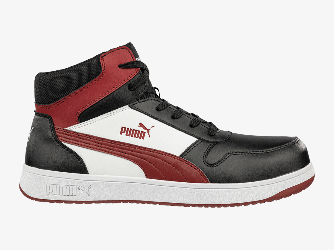 Is dit echt een veiligheidsschoen? Natuurlijk! De nieuwe FRONTCOURT van PUMA Safety, geïnspireerd op klassieke sportschoenen, ziet er niet alleen goed uit, maar schittert ook door zijn geraffineerde eigenschappen! De S3-veiligheidsschoen met glasvezelneus en flexibele antiperforatiebescherming wordt geleverd met een antislip en tot 300°C hittebestendige buitenzool, die overtuigt door optimale grip en perfecte demping. Een in de zool verwerkt rotatiepunt in het midden van de voet minimaliseert wrijving en vermoeidheid. Het Evercushion® RELIEF voetbed zorgt voor optimale drukontlasting en een natuurlijke positie van de voet in de schoen dankzij de speciale ondersteuning van de voetboog. Schokdempende elementen in de hiel en de voorvoet absorberen schokken en stoten wanneer de voet neerkomt en maken de FRONTCOURT maximaal comfortabel - zelfs op lange werkdagen.