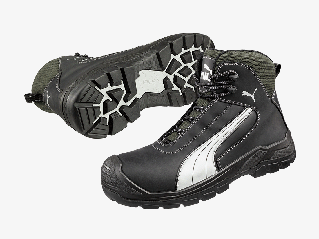 De Scuff Caps-serie is één van de meest succesvolle ontwerpen voor veiligheidsschoenen, speciaal ontworpen en gemaakt voor in de bouw, de machinebouw en de industrie. Hier wordt hoge belastbaarheid van de schoen gecombineerd met ongeevenaard draagcomfort. Dat is met name in de bouw ook nodig, omdat schoenen regelmatig acht, negen of nog meer uren achtereen gedragen worden. De CASCADES MID, met zijn zwarte schacht van gevet runderleder en sterk Cordura®, is niet alleen mooi strak ontworpen: deze schoen overtuigt ook met zijn bijzondere eigenschappen. Het in de hiel verwerkte EVER.FLEX ontkoppelingspunt helpt de voet om bij iedere stap het ideale contactpunt tussen hiel en grond te vinden - individueel aangepast aan gewicht, grootte en paslengte van de drager. Het VOLUME PLUS systeem zorgt voor nog meer comfort, doordat de speciale vorm van de leest meer plaats maakt voor de kleine tenen.