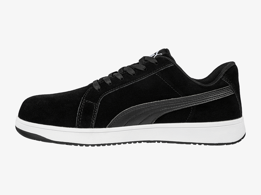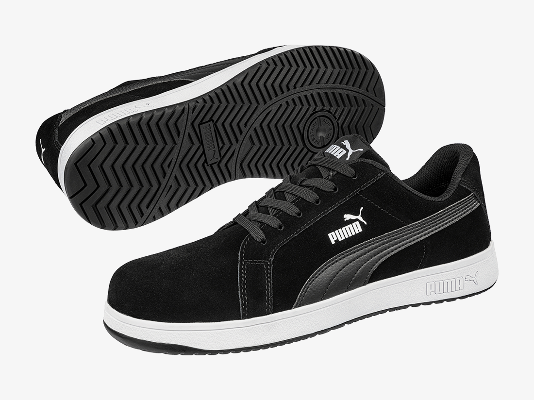 Is dit echt een veiligheidsschoen? Natuurlijk! De nieuwe ICONIC van PUMA Safety, geïnspireerd op klassieke sportschoenen, ziet er niet alleen goed uit, maar schittert ook door zijn geraffineerde eigenschappen! De S1PL veiligheidsschoen met glasvezelneus en flexibele antiperforatiebescherming wordt geleverd met een antislip en tot 300°C hittebestendige buitenzool, die overtuigt door optimale grip en perfecte demping. Een in de zool verwerkt rotatiepunt in het midden van de voet minimaliseert wrijving en vermoeidheid. Het Evercushion® RELIEF voetbed zorgt voor optimale drukontlasting en een natuurlijke positie van de voet in de schoen dankzij de speciale ondersteuning van de voetboog. Schokdempende elementen in de hiel en de voorvoet absorberen schokken en stoten wanneer de voet neerkomt en maken de ICONIC maximaal comfortabel - zelfs op lange werkdagen.