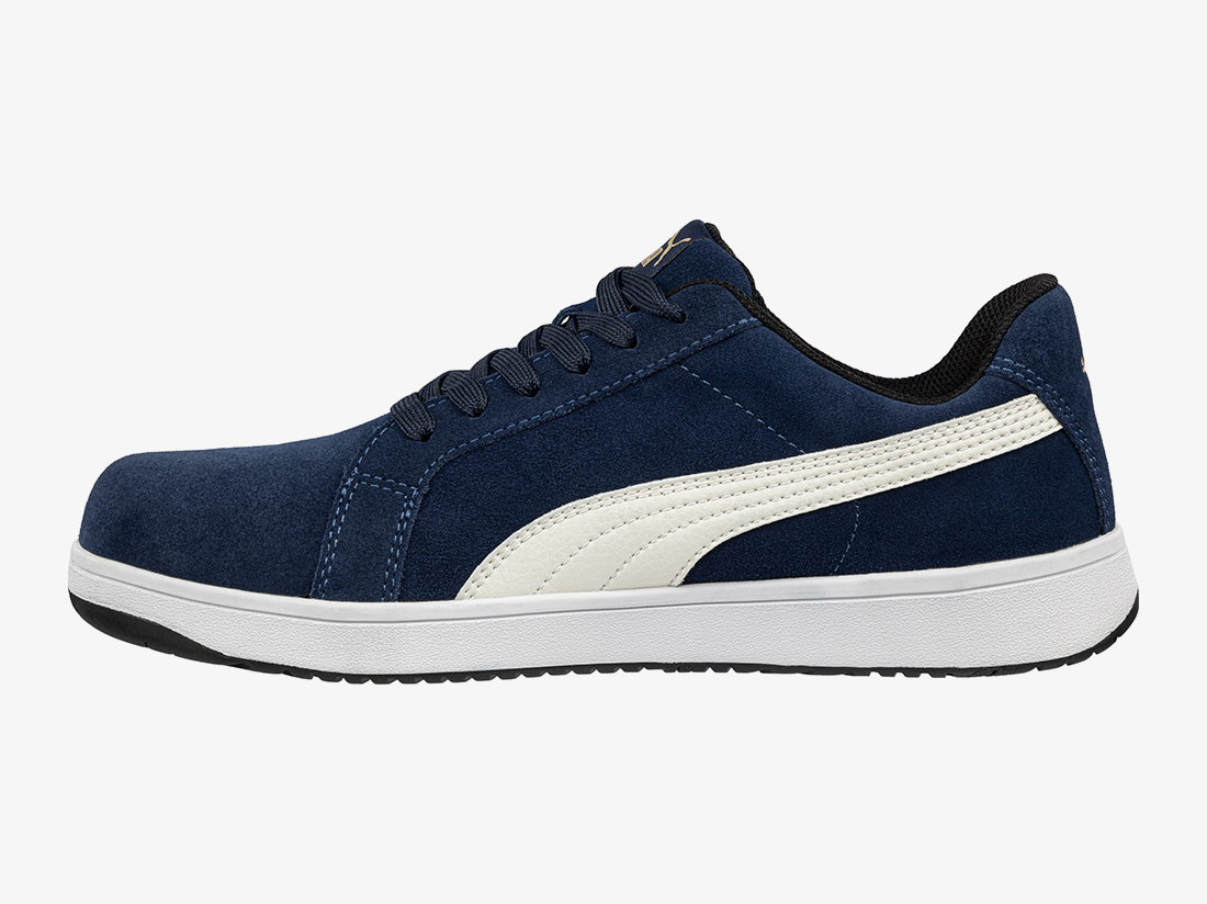 Is dit echt een veiligheidsschoen? Natuurlijk! De nieuwe ICONIC van PUMA Safety, geïnspireerd op klassieke sportschoenen, ziet er niet alleen goed uit, maar schittert ook door zijn geraffineerde eigenschappen! De S1PL veiligheidsschoen met glasvezelneus en flexibele antiperforatiebescherming wordt geleverd met een antislip en tot 300°C hittebestendige buitenzool, die overtuigt door optimale grip en perfecte demping. Een in de zool verwerkt rotatiepunt in het midden van de voet minimaliseert wrijving en vermoeidheid. Het Evercushion® RELIEF voetbed zorgt voor optimale drukontlasting en een natuurlijke positie van de voet in de schoen dankzij de speciale ondersteuning van de voetboog. Schokdempende elementen in de hiel en de voorvoet absorberen schokken en stoten wanneer de voet neerkomt en maken de ICONIC maximaal comfortabel - zelfs op lange werkdagen.