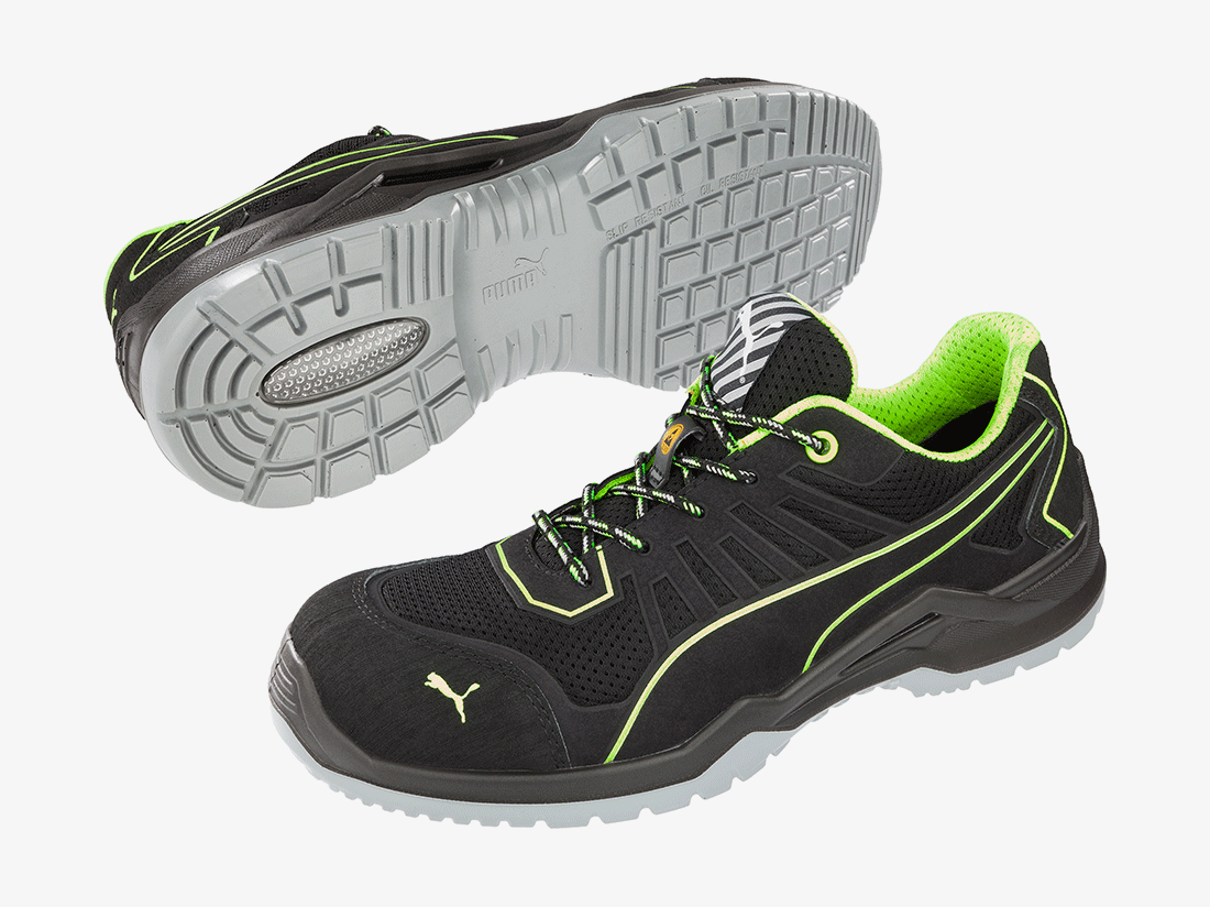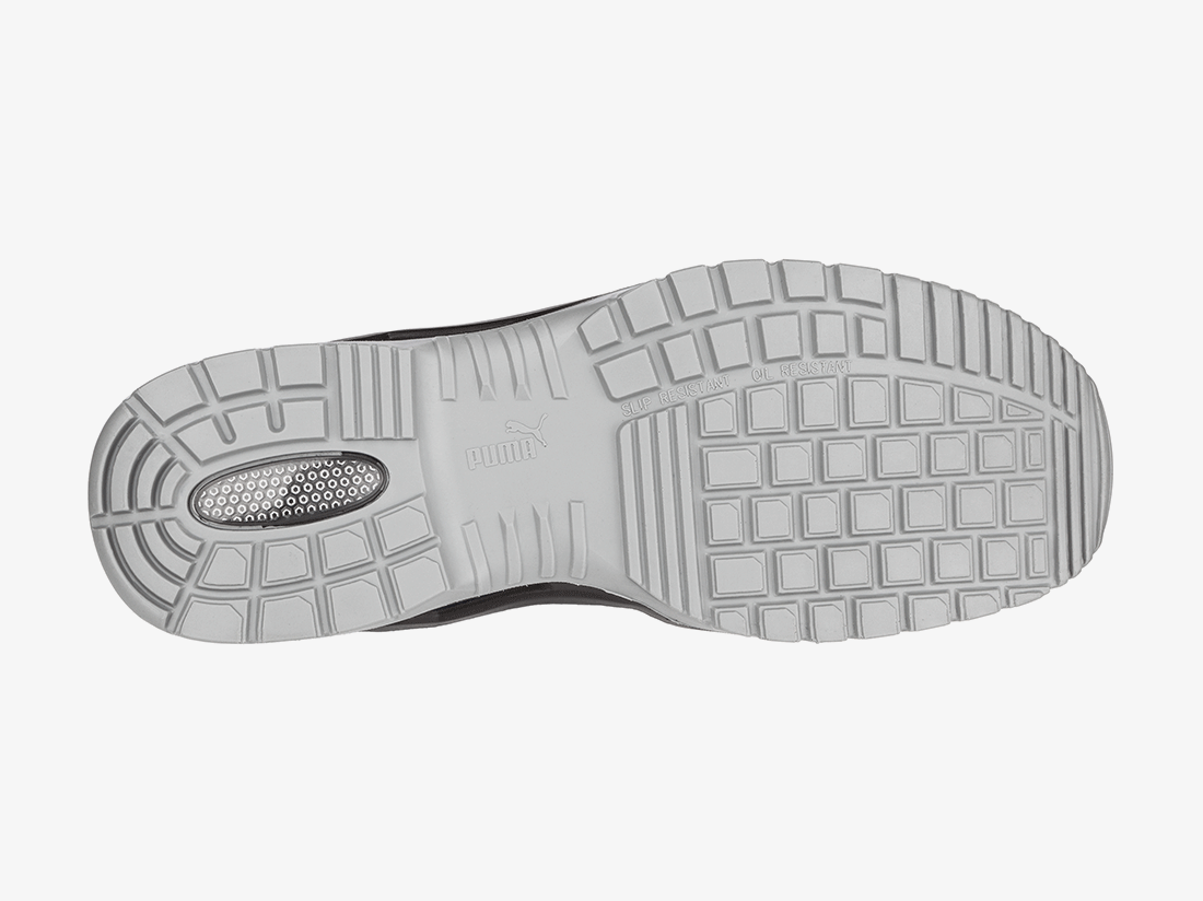 De metaalvrije FUSE TC uit de productlijn TECHNICS LINE van PUMA SAFETY kenmerkt zich door de grote flexibiliteit en voelbaar licht gewicht. Dat wordt mogelijk gemaakt door de natuurlijke FLEXMOTION®-zoolarchitectuur. Deze combineert het “Natural Running”-concept met de allermodernste technologie op het gebied van veiligheidsschoenen. De upper van deze S1P veiligheidsschoen met ESD eigenschappen is met behulp van FUSE.TEC® Technologie gemaakt. Daarbij worden verstevigingen naadloos samengevoegd met het basismateriaal van textiel. Daardoor zijn er in sterk belaste delen (zoals flexzones) helemaal geen naden nodig. De schoen wordt flexibeler en sterker en heeft een perfecte pasvorm. Het ingelegde evercushion® BA voetbed van schuimstof met open poriën transporteert vocht weg van de voet en zorgt samen met de ademende BreathActive voering de hele dag lang voor een prettig voetklimaat. Het speciaal ontwikkelde wafelprofiel van de loopzool zorgt garandeert optimale grip, vooral op gladde industriële vloeren.
