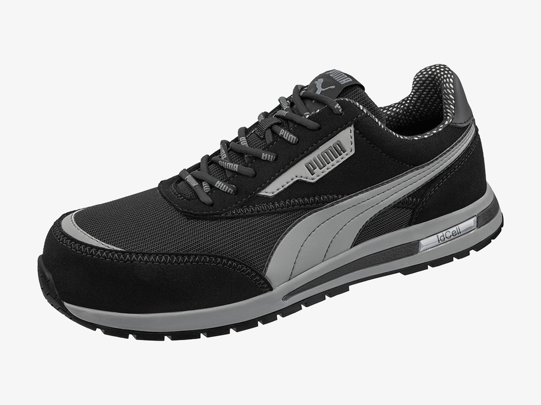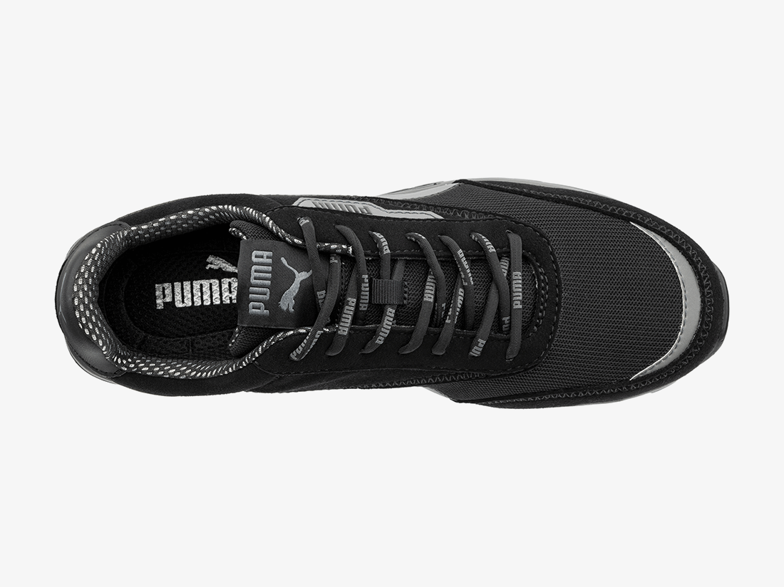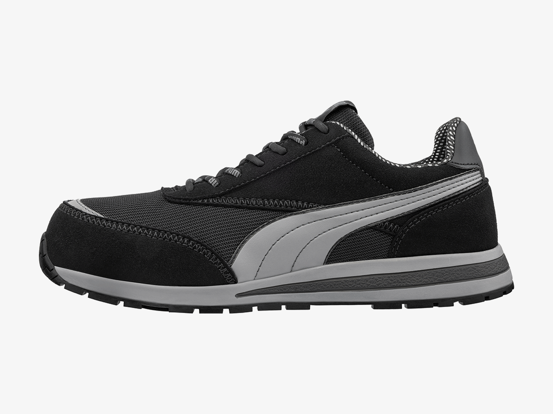 De Puma Safety Rider BLK Low S1PS is een lichte, metaalvrije veiligheidsschoen die je betrouwbare bescherming biedt zonder extra gewicht. De combinatie van een glasvezel veiligheidsneus en flexibele FAP® penetratiebescherming zorgt voor impact- en doorprikbeveiliging, terwijl het ademende sandwich-mesh bovenwerk met slijtvaste microvezel optimale ventilatie garandeert. Dankzij de BreathActive voering blijven je voeten droog, en het evercushion® CUSTOM FIT MID voetbed draagt bij aan langdurig draagcomfort. De URBAN-rubberen buitenzool is hittebestendig tot 300 °C en biedt uitstekende grip, zelfs onder zware werkomstandigheden.
