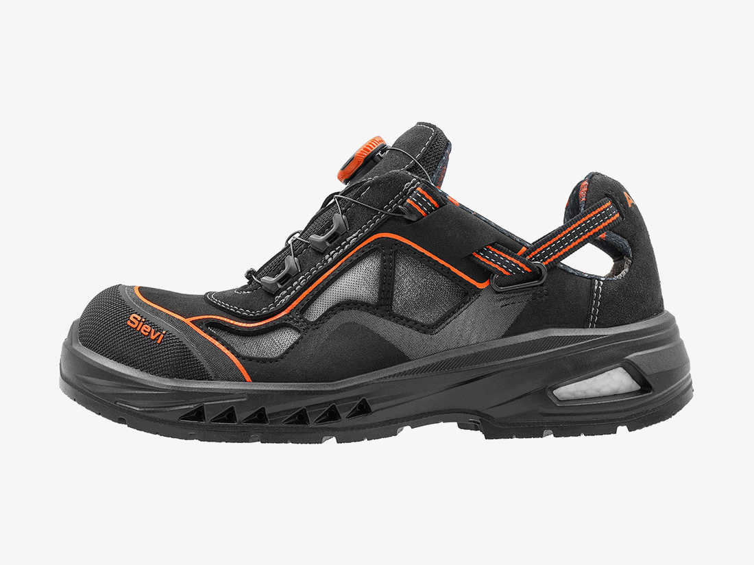 De Sievi Airgo 4 Roller S1P is een comfortabele en geavanceerde veiligheidssandaal die ventilatie, flexibiliteit en bescherming optimaal combineert. Dankzij de ruime XL-pasvorm biedt deze schoen extra comfort en bewegingsvrijheid, ideaal voor lange werkdagen in warme omgevingen.