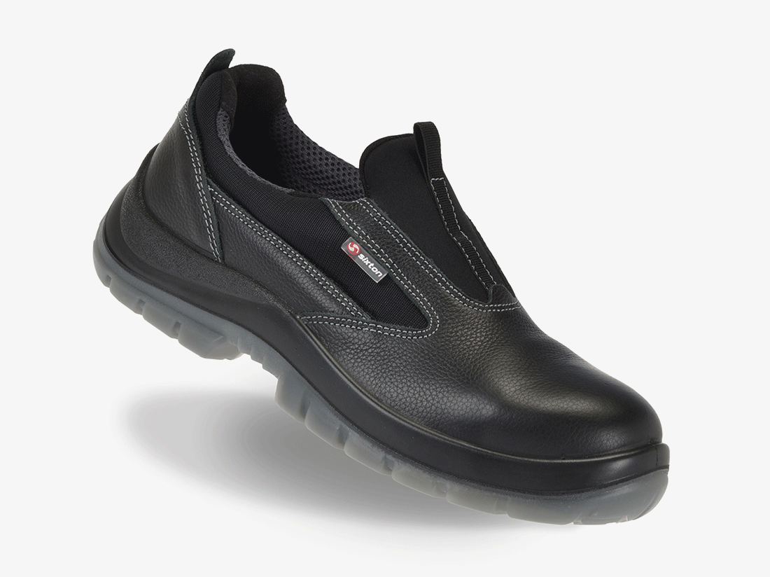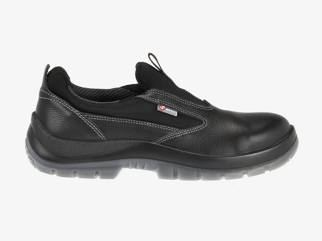 Een instapper veiligheidsschoen van Sixton. S3 en antislip op alle ondergronden, voorzien van composiet neus en metaalvrije antiperforatiezool.