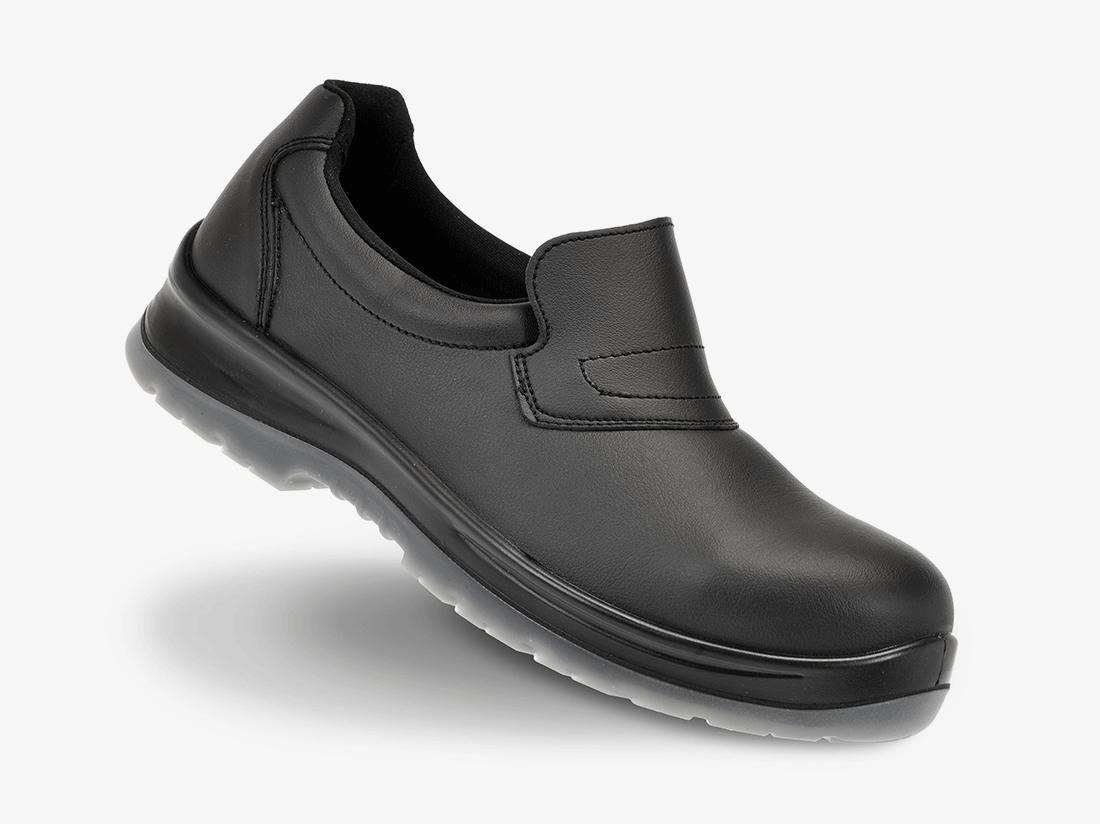 Een lage hygiënisch schoon te houden instapper door microfiber bovenkant. S2-normering en antislip op alle ondergronden, voorzien van composiet neus en geen zoolbescherming.