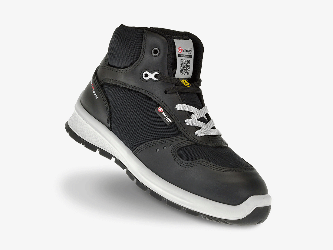 Een sportieve veiligheidsschoen van Sixton voor dames. S3 en antislip op alle ondergronden, voorzien van aluminium neus en kevlar tussenzool.