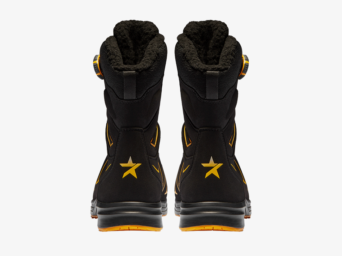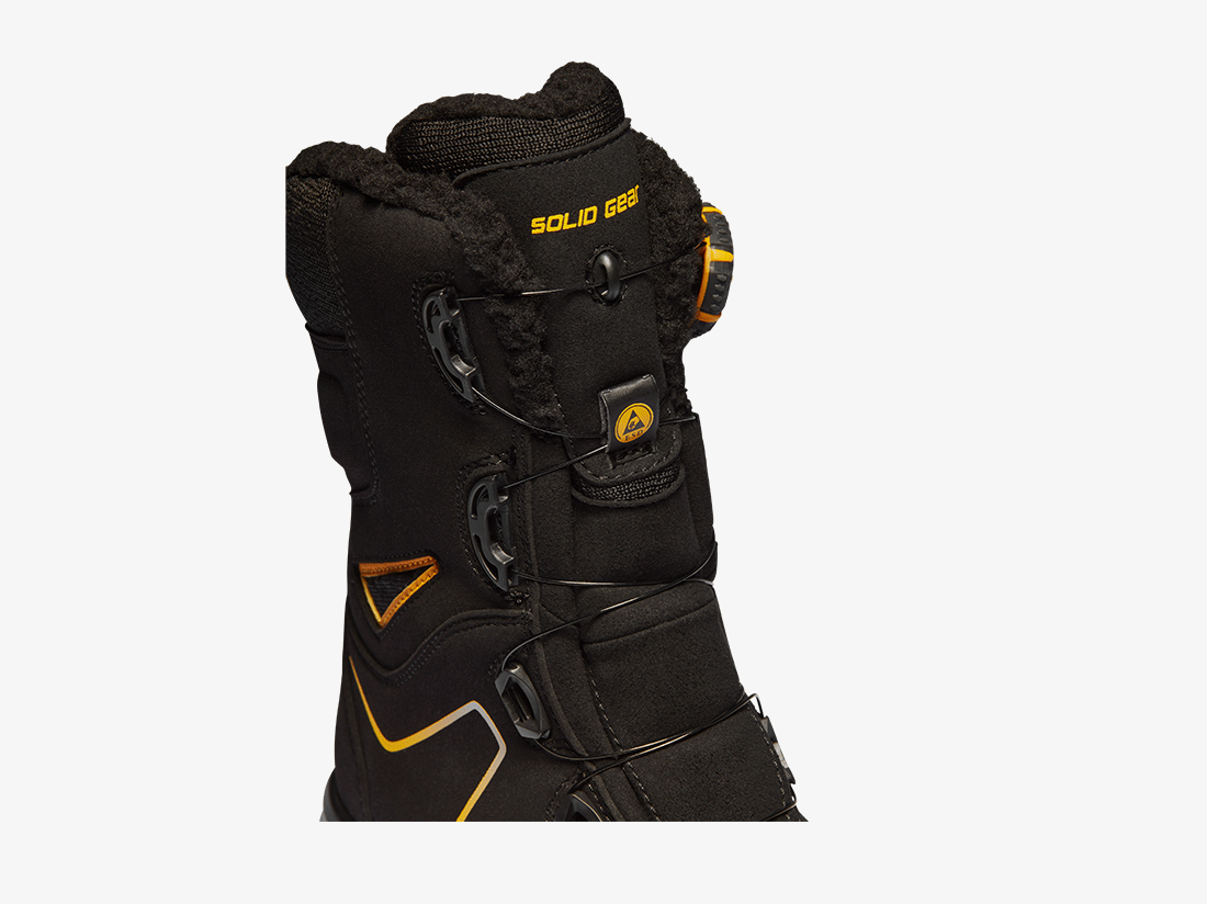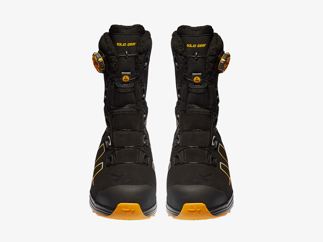 SOLID GEAR Shore, de perfecte combinatie tussen ademend vermogen en demping. Dit is het resultaat van een bovenwerk van microvezel met TPU-versteviging en hoog dempende PU-tussenzool. De gegoten polyurethaan technologie in de tussenzolen, samen met een dunne rubberen buitenzool, resulteert in een licht gewicht, hoge demping en verhoogt het comfort. De laars is voorzien van technische polyester fleece voering en een Boa® Fit-systeem voor een eenvoudige sluiting. Composiet zool en glasvezel neus. ESD functie volgens EN 61340-4-3: 2002. Bovenzijde: Microfiber met TPU-verstevigingen Voering: Technical polyester fleece Buitenzool: Antislip en oliebestendig rubber Tussenzool: Gegoten PU Inlegzool: Zeer ademend PU-schuim met vochtafvoerende bovenstof Kenmerk: BOA® Fit-systeem Pasvorm: Breed Maten: 36-48 Veiligheidsstandaard: EN ISO 20345: 2011 S3, SRC, HRO Bescherming: Composiet zool en en glasvezel neus