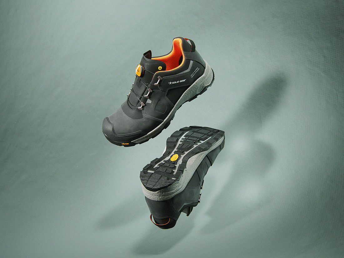 De derde generatie van Vapor is geüpgraded met verschillende hoogwaardige materialen en componenten. Het bovenwerk is een combinatie van LWG-leer en speciaal ripstop-textiel. Klassieke configuratie van het BOA® Fit-systeem voor een nauwsluitende pasvorm. 3D mesh voering van gerecycled polyester. ETPU-tussenzool met energieteruggave en demping, die lang meegaat. Dubbele TPU-schachten zijn geïntegreerd in de tussenzool om een op de markt unieke stabiliteit en torsiestijfheid te behouden. De rubberen buitenzool van Vibram® is zeer duurzaam met goede antislip eigenschappen. Binnenzool van OrthoLite®, speciaal ontworpen voor de Solid Gear leest, heeft superieure rebound-eigenschappen en is voornamelijk gemaakt van gerecyclede materialen. ESD-functie volgens EN IEC 61340-4-3:2018.