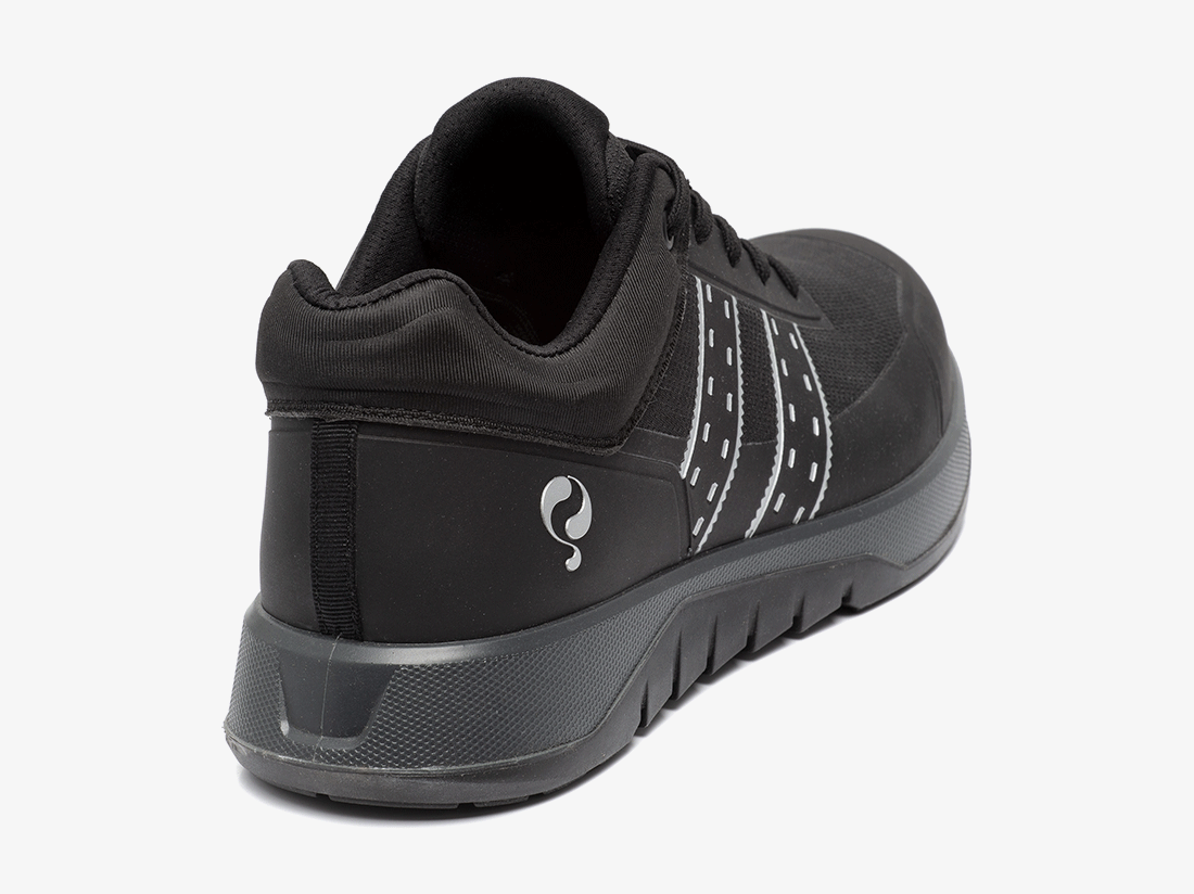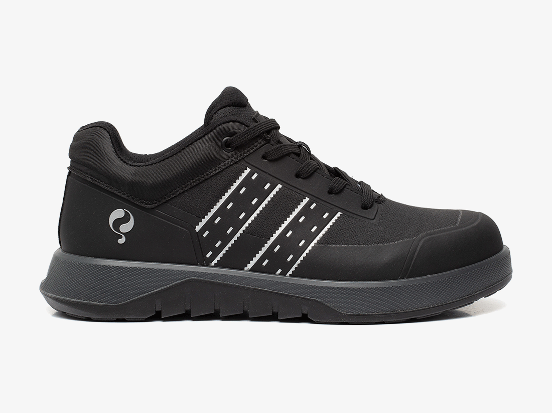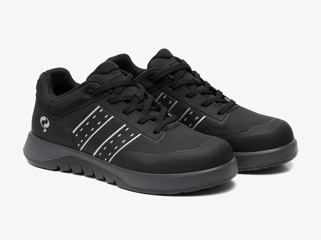 Deze veiligheidsschoen combineert maximale bescherming met optimaal draagcomfort. De schoen voldoet aan de S3S-, SR- en ESD-normeringen, is waterafstotend (60 minuten) en volledig staalvrij. Bovendien is hij volledig VEGAN, bevat geen dierlijke materialen en bestaat voor ongeveer 60% uit gerecycled materiaal. Dankzij de ESD-bescherming is deze schoen uitermate geschikt voor werkomgevingen met gevoelige elektronica. Het bovenwerk is gemaakt van zwart geweven microfiber in combinatie met Lycra en TPU, wat zorgt voor een lichtgewicht, flexibel en sterk geheel. De watertong is vastgezet aan de binnenvoering om binnendringend vuil te voorkomen. De ademende 3D-mesh voering is sterk, vochtabsorberend en sneldrogend. De uitneembare binnenzool is antistatisch, ademend en reguleert effectief vocht. De flexibele PU/rubber loopzool biedt uitstekende slipweerstand en schokabsorptie in de hiel. De tussenzool van kevlar biedt perforatiebescherming zonder in te leveren op flexibiliteit, en de composiet veiligheidsneus maakt de schoen extra licht. Verkrijgbaar in maat 38 t/m 47 is deze schoen de perfecte keuze voor wie veilig, comfortabel en verantwoord wil werken.