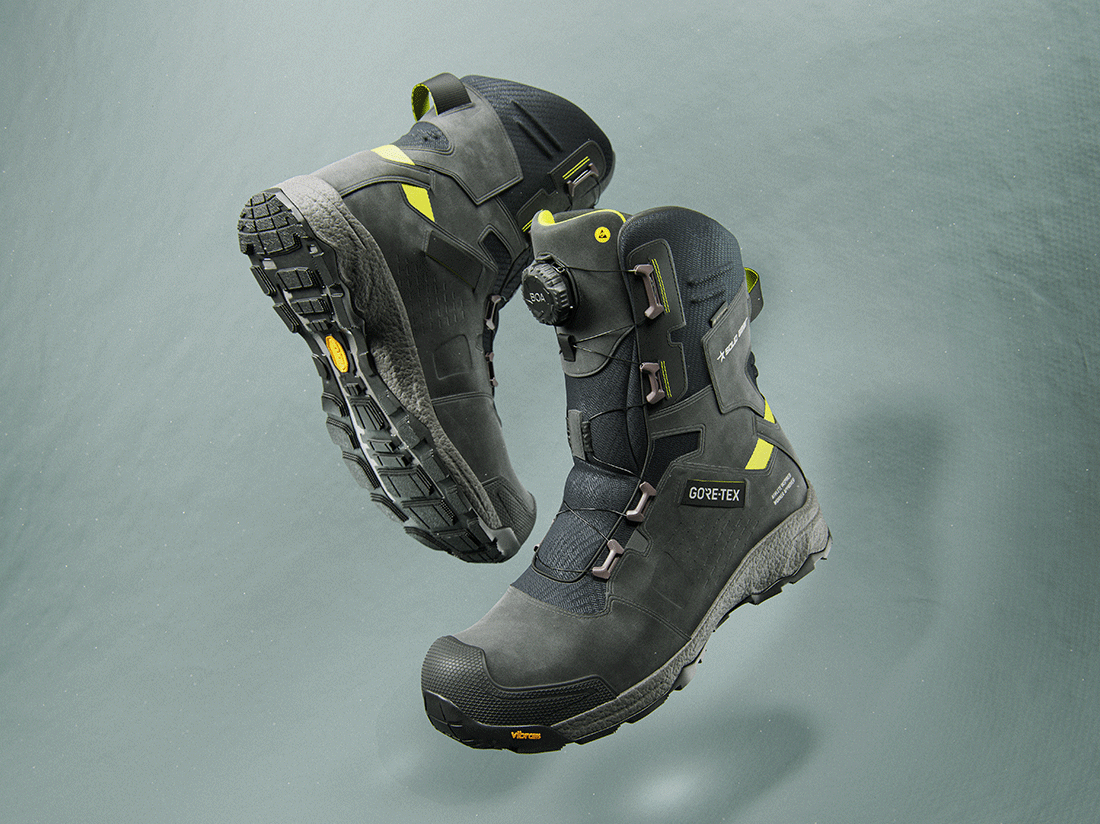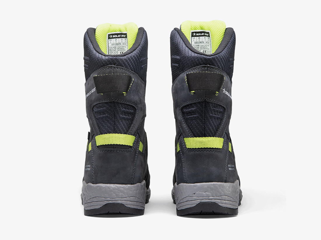 De derde generatie Vapor met diverse high-performance materialen en onderdelen, nu beschikbaar als hoge winterlaars. De bovenzijde bestaat uit een combinatie van LWG leer en textiel. Het BOA® Fit System is klassiek geconfigureerd voor een zeer nauwkeurig instelbare precisie-pasvorm. Een GORE-TEX wintervoering en membraan isoleren tegen de kou en voorkomen dat water binnen kan dringen. ETPU tussenzool met energieteruggave en permanente demping die zacht blijft in koud weer. In de tussenzool zijn dubbele TPU cambreurs verwerktvoor stabiliteit en torsiestijfheid die uniek zijn voor deze markt. Het speciaal door Vibram® ontwikkelde Traction Lug profiel van de rubberen buitenzool geeft ongeëvenaarde grip in winterse omstandigheden, dus ook in de kou. De inlegzool is speciaal voor Solid Gear ontworpen door OrthoLite® voor buitengewone vering, met gerecycled materiaal als voornaamste bestanddeel. Glasvezel veiligheidsneus en zachte bescherming tegen doorboring. ESD functie volgens EN IEC 61340-5-1-2016.