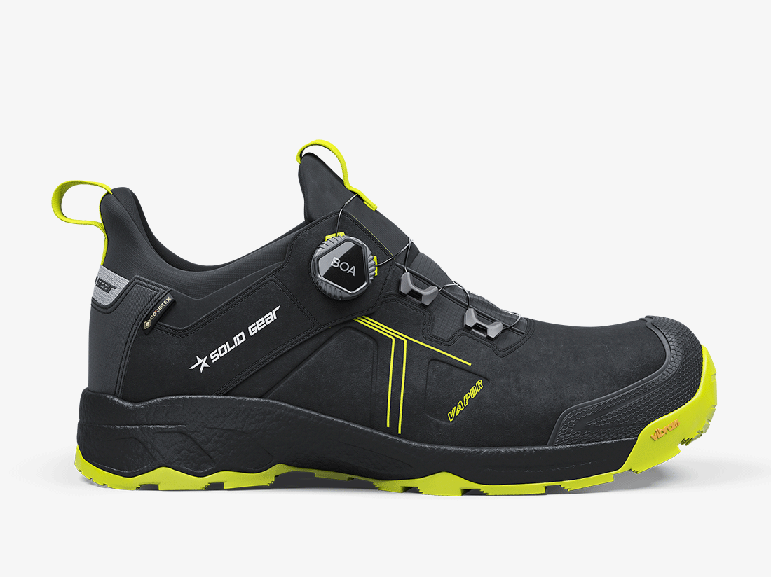 De Solid Gear Vapor 3 GTX Low (SG80018) is geen standaard veiligheidsschoen, maar een innovatieve werkschoen die sportief design combineert met maximale bescherming en draagcomfort. Dankzij het BOA® Fit-systeem trek je de schoen snel en precies aan, wat tijd bespaart en altijd zorgt voor een perfecte pasvorm. Het ademende GORE-TEX® membraan houdt je voeten droog bij regen en vocht, terwijl de schoen toch ventileert bij warme omstandigheden. Zo blijf je het hele jaar door comfortabel werken.